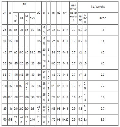 Note: In order to meet th e requi rements suitab lefor corrosi on resi stant indu stry, the valve seat for sealin g can be made of the rubbers like EPDM, FRM, IIR or GR. Hand wheel type butterfly valve size table. Note: 1. The bore diameter of flange in these butterfly valve is applied according to 6B2555-81, l.OMPa, or customized as per the requirements of customers to be manufactured in accordance with other standards like JIS, DIN and ANSI. The valve flap of Model D71X-6F is madeof PVDF while sealing materials of FPM, the materials of the valve body and flap applied in Model D71X-6Sis FRPP while its sealing materials is EPDM, it is normally called as handle butterfly valve.