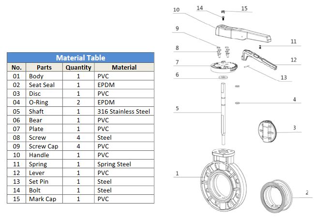 Top Quality Industrial Style Valve. Durable PVC Body and Disc Construction. Locking Lever Handle Design. Includes Durable 316 Stainless Steel Shaft. Corrosion-Resistant EPDM Seals. Flanged Body for Easy Installation. Available in 2” – 8” Sizes.