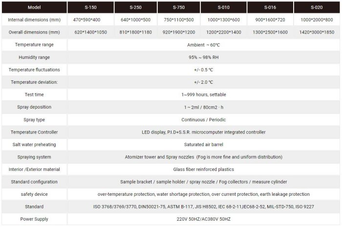Salt spray test chamber is used to test the anti-corrosion quality of all the materials surfaces of painting, coating, electroplating in condition of salt spray environment. Basic salt spray test chambers meet ASTM, ISO, IEC and other International Standards test methods, capacity available in 108L, 320L, 410L, 780L, 1000L, 1600L capacity.
