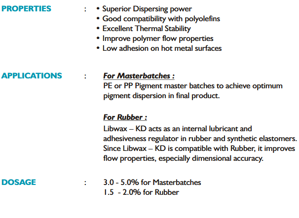 Appearance White Powder. Melting Point100 - 105° C. Melt Viscosity at 140° C 40 CPS. Penetration Hardness at 25° C 3-5 dmm.
