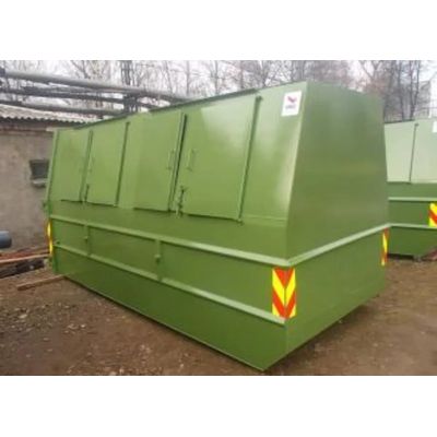 Classification of lift containers:, standard non-reinforced - 3mm side wall,, 4mm floor reinforced - 4mm (or more) side wall, 5mm (or more) floor, for special materials, ensuring less weight for the container and longer working life (Hardox/Raex and analogues), closed containers, Filling containers from the front, 4 m3 to 14 m3, Various additional options - painting, logo, reflectors, awnings.