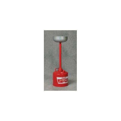 Lift Oil Drain Can is a quality 5 gallon capacity lift oil drain can. For use in auto and truck work bays, service stations and garages. Large funnel (11.5" dia.) on a telescoping tube is 66" when raised, 38" when lowered. Thumb set screw for tightening. Eagle red powder coat.