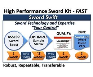 Utilizing our proprietary Sword Swift™ Method Development Process and Sword Swift™ Detection Reagents, the expert scientists at Sword will develop, optimize, and performance qualify a novel LBA to quantitate your analyte of interest in as little as 22 days.