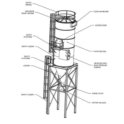 Light industrial collector suitable for systems with intermittent dust loadings, as cleaning only occurs during shutdown.