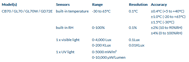 As all sensors are on leads, the combination is ideal for all environments and in particular display cases, so that only the light sensor and tip (top 10mm) of the RHT10E probe need be visible. The LS50 (`Light puck`) and LS70 modules utilise the museum and conservation industry preferred Elsec - Littlemore light / light and UV sensors. The GD72E transmitter interfaces with all sensors at digital level so that no system accuracy is lost. When used with Darca Heritage software both instantaneous and cumulative light and UV values can be provided. The LS50 light only module, LS70 light/UV module, and the RHT10E must be ordered separately.