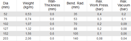 Resistant to hydrolysis and microbes, food grade wall acc. to EG regulation no. 1935/2004 and no. 10/2011, FDA standard 21 CFR 177.2600 and 178.2010, good abrasion resistance and mechanical strength, very good flexibility, crush recoverable