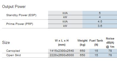 - Rated Power (Standby) 400_50 Hz kVA 5