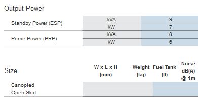 - Rated Power (Standby) 400_50 Hz kVA 11