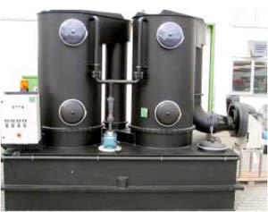 The selection of the materials is determined by the application conditions. All system components (containers, fans, packing elements, circulating pumps, pipelines and measuring instruments) which come into contact with the medium are therefore made of chemical-resistant plastics.