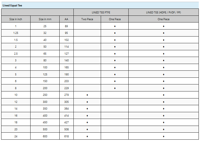 Lined Tee 1” (25NB) TO 24” (600 NB). The PTFE Lined Tee manufactured by Asset Fluro System is a pipe fitting that is designed to connect three pipes together. The tee is made from a combination of PTFE (polytetrafluoroethylene) and steel. PTFE is a type of plastic that is known for its excellent chemical resistance, high temperature tolerance, and low friction properties. The steel component of the tee provides strength and durability.