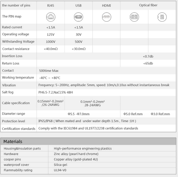 Linko - Model YM-24-USB3.0 -Plastic Waterproof Aviation Plug and Socket Industrial Data Connector