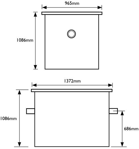 Capacity Ltrs: 748. Inlet: 110mm. Outlet: 110mm.