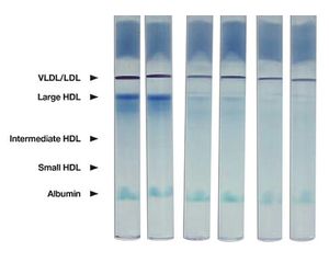 The Lipoprint HDL test is a convenient, non-denaturing, linear polyacrylamide gel electrophoresis method that separates and quantifies up to 10 HDL subfractions in serum or plasma.