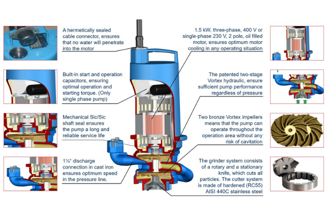 Only with our high-pressure two-stage Vortex OGP grinder pumps, you have the option of making pressure sewer systems in the open country, with the same pump everywhere. The OGP grinder pump is the first two-stage Vortex grinder pump in the world. This is specially developed for pressure sewer systems, and designed for a long and reliable life.