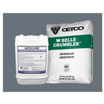 ACCU-VIS & BELLE CRUMBLES blends a granular bentonite with a consistently controlling liquid polymer to form a slurry that provides an economical way to seal and grout boreholes, well casings, and earthen structures. Once set, the slurry forms a complete grout seal with low permeability.