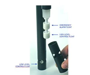 If there is a problem that causes the liquid level to rise above the high level-control float, a third "emergency" float causes an alarm with a flashing beacon LED and loud warbling buzzer that can be heard through any industrial plant noise. The emergency alarm float is also a redundant relay shutoff.