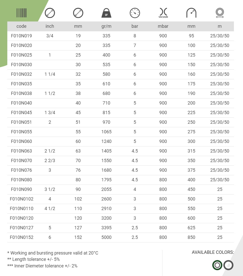 This hose can be used for suction and delivery of fresh and sea water, sewage, fertilizers, chemical solutions, abrasive solids and slurries etc.
