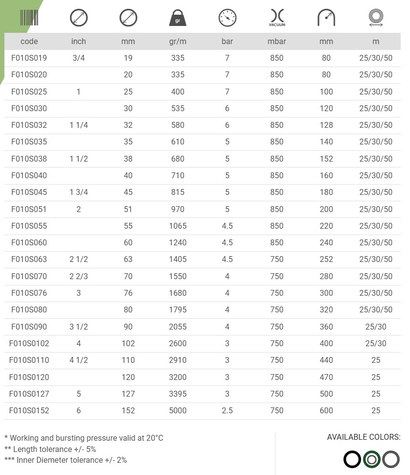 This hose can be used for suction and delivery of fresh and sea water, sewage, fertilizers, chemical solutions, abrasive solids and slurries etc.