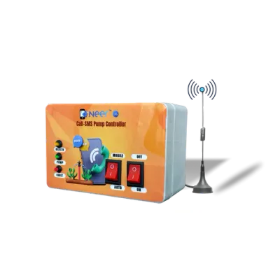 The Neer Lite 2G SMS-Call Pump Controller is an advanced solution for managing 1 and 3 phase pumps remotely via call and SMS. Designed for versatile compatibility, it works seamlessly with a range of pump types, including 2-button DOL, Star-Delta, Oil, or submersible starters. The controller supports multiple SIM cards (excluding JIO), featuring a reliable 3dBi magnetic antenna with a 2-meter cable for robust connectivity. Integrated safety features include phase fault protection and voltage protection, which automatically halt operations and send alerts if irregularities are detected. The device facilitates multiple user access, accommodates up to 10 phone numbers, and offers immediate setup in under two minutes through SMS. Users can monitor real-time operational data such as voltage, phase status, pump runtime, and more. Backed by a 1-year warranty for manufacturing defects, the controller is representative of KrishiVerse's commitment to quality and reliability.