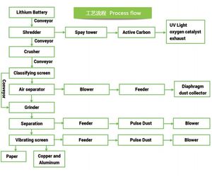 At present, the research on the recycling of waste lithium batteries is mainly focused on the recovery of high-value anode precious metals cobalt and lithium. Copper in the negative electrode of waste lithium battery( content up to 35%) is an important production raw material widely used Carbon powder adhered to it can be used as additives such as plastics and rubber. Based on the structural characteristics of lithium batteries, our company adopts an environmentally-friendly physical separation process to realize efficient separation and recovery of waste lithium batteries. The lithium battery recycling production line is used for dismantling and recycling the Soft package battery, cellphone battery, Shell batter Cylindrical battery etc. The final products of this plant is Graphite powder, Cobalt acid lithium Aluminum and Copper.Most popular related searches