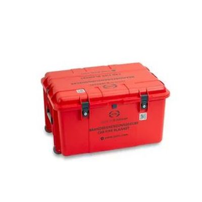 lithium-ion fire blanket - 19x26 ft, with protective case. Fire-fighting blanket for environmental protection in the event of battery accidents. Reduces the risk of fire spread and associated collateral damage. The blankets are suitable for sprinklers and fire-fighting water and thus create a cooling effect. According to EC safety data sheet 91/115/EEC and electrostatic certificate according to DIN 54345-1, non-conductive. For the containment of emerging flames, simple, quick handling on-site. High-temperature resistant fabric, non-itching, soft, and flexible.