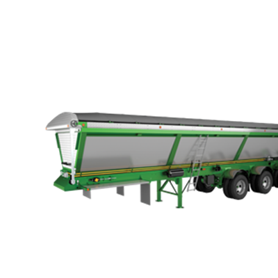 The conveyor built into the chassis moves the load towards the rear door without the risk of side spillage associated with the unloading of traditional dumper trailers. The load mass is evenly supported by a series of robust crossbeams, instead of a single metal rail. Chains pull the conveyor to ensure a smooth, even and fail-safe operation.