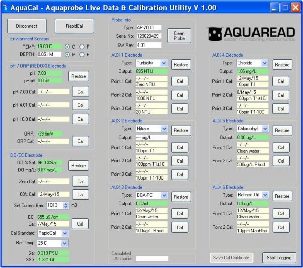 AquaCal - Live Water Quality Data Logger and Calibration Software