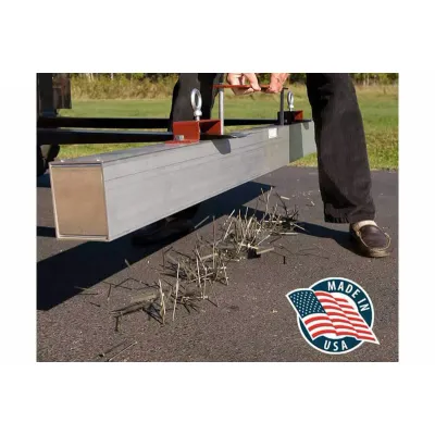 The Load-Release All-Terrain Magnetic Sweeper is engineered for rigorous environments such as gravel, dirt, and broken concrete. It features powerful Grade 8 Permanent Ceramic Magnets enclosed in an aircraft-grade aluminum housing. This robust design includes fork pockets for easy mounting on vehicles or forklifts, allowing swift and effective removal of ferrous metal debris. The top-mounted release bar facilitates quick debris discard. It is ideal for applications in warehousing, distribution, trucking, transportation, and material handling. By eliminating metal debris, this sweeper reduces flat tire incidents, thereby minimizing operational downtime and associated costs.