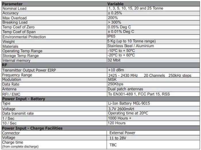 The wireless Load Cell is a strain gauge based stainless steel tension type load cell. It has the capability of wirelessly transmitting its data to one of our compatible readouts and displays or recording its data locally. Its inbuilt 32MBit memory can hold up to 280 hours of data which can be downloaded to a PC via its USB cable. The Load Sensor transmits using the worldwide licence free frequency of 2.4GHz on two built in antennas. The Load Cell is used with our HandHeld Receiver which can read several devices at the same time. In addition, the Cabin Display is available for fixed mounting. Or our stand alone Receiver Interface which is used to output the data via RS232/RS422.