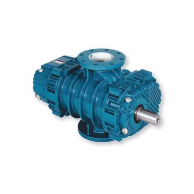 Matched impellers rotating in opposite directions, trap a volume of air at the inlet and move it around the perimeter to the outlet. This cycle is repeated four times during each revolution of the input shaft. The capacity of the blower is proportional to the speed of rotation, while pressure is generated by system resistance. Rotation of the impellers is synchronized by helical timing gears which are keyed to the shafts, eliminating contact between impellers.