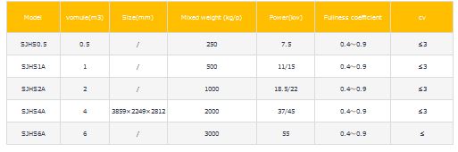 SJHS Series Double-circle paddle Mixer machine Checked by the State General Administration of Quality, 95% mixing uniformity (CV 5%), normal residue≤0.1%, power consumption is only 0.3kw.h/t. Loading coefficient variable scope is 0.4-0.9. Widely used in many industries for mixing materials with different proportion or size.