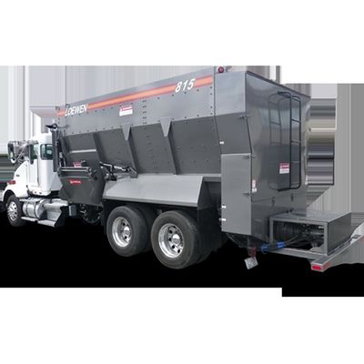 Size 420 to 1360 cu. ft. Superb mixing action. Fast unloading. Uniform mix. Dependable. Shreds large bales of alfalfa or local hay with ease.