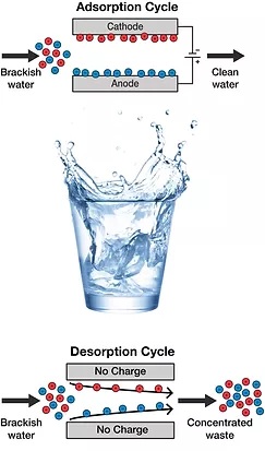 Our patented technology of capacitive deionization works when electricity is applied to the electrode, ions of opposite charge pass through the ion exchange electrode and move to the surface of the electrode and are electrically adsorbed.