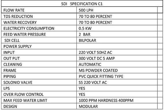 SMART Deionization water purification technology is available in 200 LPH. SDI technology is tunable, scalable, helps consumers reduce water wastage, chemical usage, and operation expenses. Replace RO with SDI. Water Recovery up to 80 %.