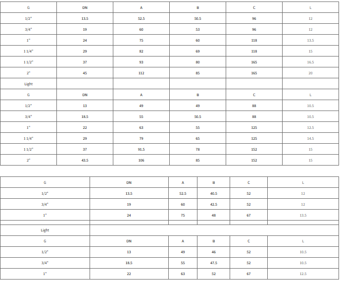 Threaded M/F ISO228/1. 99% leak tested. Available:in all sizes from 1/2" up to 2".