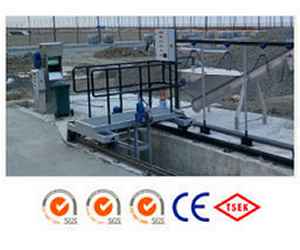 It is a mechanical equipment where the sand kept in the sand catcher pools is separated from the water by means of an auger mounted on the carrier construction and driven by a motor and reducer group. It ensures that the sand in the wastewater is kept and separated at the inlet point of the plant in order not to wear out the mechanical equipment and pumps in the plant. Grit present in the wastewater needs to be held and separated at the inlet, without which it will quickly cause the mechanical equipment and pumps in the plant to deteriorate. Grit classifiers are designed to separate the solids in the grit and water mixture collected by grit scrapers, and they consist of a tank with a conical bottom and a screw conveyor. The motor driven screw conveyor carries and discharges the grit that accumulates at the tank bottom to a container located at the outlet.