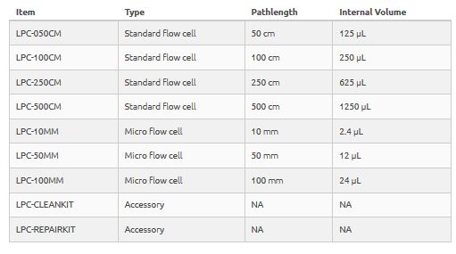 (LPC-050CM) Liquid Waveguide Capillary Cell, 50 centimeter pathlength