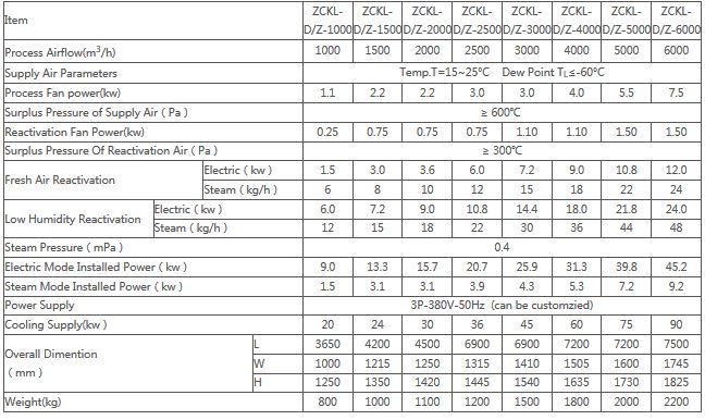 ZCKD series low dew point dehumidifier is designed based on the craft characteristic and special requirements of production environment of lithium battery material industry.At present,it is widely used in many factories of lithium battery and lithium material,already proofed the dehumidifier can meet the specail requirements of the production craft. ZCKD Low Dew Point(-70°C)series can reach temperature 23˚C /relative humidity 1% requirements.