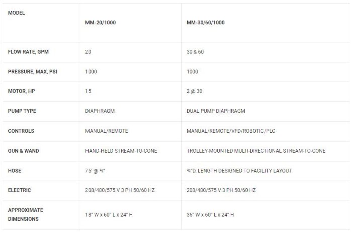 Washbay - Model MM-20/1000 and MM-30/60/1000 -Low Flow Demucking Systems