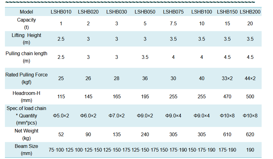Longhai - Model LSHB -Low Headroom Chain Block