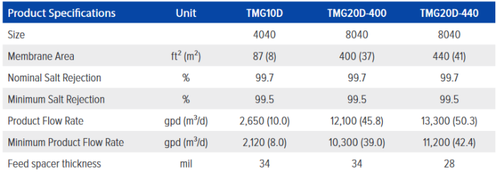 Toray - Model TMG(D) Series -Low-Pressure Brackish Water Reverse Osmosis (RO) Membrane