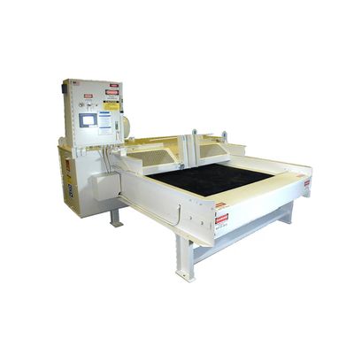 - Shredder is equipped with a PLC and touch screen controls to help visualize the operation, as well as provide diagnostics and system efficiency tracking.