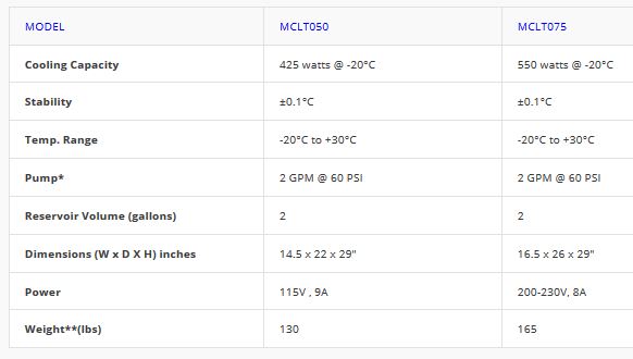 The BV Thermal Systems Low Temperature Chillers offer continuous cooling with a temperature from -40° to +30°C.  They are ideal for laboratories, and semiconductor, medical, pilot plants and custom applications that require accurate and precise ultra-low temperature control. Featuring a low profile design with high quality locking casters, the Low Temperature Chillers  are optimized at your load point for maximum efficiency.  The Low Temperature Chillers also provide high capacity cooling for demanding applications with a small footprint with exceptional performance and unmatched reliability. With environmentally friendly CFC refrigerant the Low Temperature Chillers feature corrosion free wetted surfaces and is RoHS compliant.  With the largest selection of options in the industry, the Low Temperature Chiller may be designed and manufactured to meet your exact requirements and specifications.