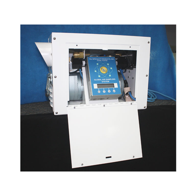 The Model GAS-28B Global Air Sampling System is a microprocessor controlled low volume air sampler consisting of an ¼ H.P. oil-less carbon vane vacuum pump with a constant air flow regulator for use where a nearly constant air flow is desirable. The regulator holds a constant pressure drop across an in-line venturi by varying the flow through a bypass valve into the pump. This system allows the pump to work at a minimum head drop at all times permitting it to run cooler, thus extending its service life. The oil-less pump requires no lubrication to maintain optimal efficiency during its service life. The pump is mounted on a base plate within a weather resistant aluminum environmental enclosure having four rubber feet. Handles are provided on the enclosure to facilitate transportation. The enclosure rating is IPX3.