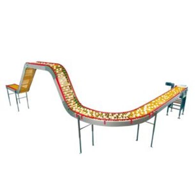Together with the plastic tab elements it is the key point of the conveyor and allows to have inclines or declines up to 60° (possible with cover caps only). In the center of the conveyor no supports or guide elements are needed for dividing or diverting the egg flow.