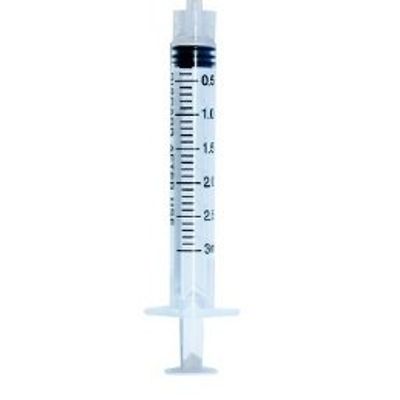 Disposable, non pyrogenic, non-toxic, sterile syringes with triple rubber gasket and the plunger blocker so that the liquid cannot escape during the application. Transparent chamber and the plunger, legible scale.