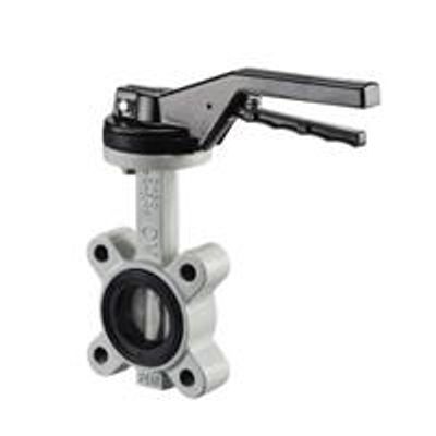 OVENTROP-Lugged butterfly valve made of nodular cast iron, PN 16. Application: BS 5155 Water between -10 °C and +110 °C and general applications. Not suitable for gas and hydrocarbons. Extended neck for insulation purposes. Connection for actuators according to ISO 5211. Body: GJS-500 (GGG-50) nodular cast iron Stem: AISI420 stainless steel Disc: CF8M AISI316 stainless steel Liner: EPDM. Lugged pattern, lever operated.