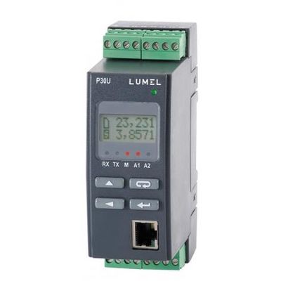 P30U transducer is designed to convert temperature, resistance, standard voltage and current signals into a standard DC voltage or DC current signal. The output signal is galvanically isolated from the input signal and the power supply. P30U has programmable measurement and additional functions. Programming parameters can be realized with the use of buttons, via RS-485 interface and free e-con software or Ethernet or any web browsers via Ethernet interface.