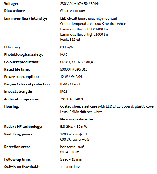 - Possibility to connect other lights which are also controlled by the one microwave detector