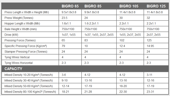 The Lyndex (formerly Lindemann) Bigro is a medium volume baler which produces 750mm high x 1100mm wide, high density bales. The Bigro is a long established design that has been improved and updated over many years.